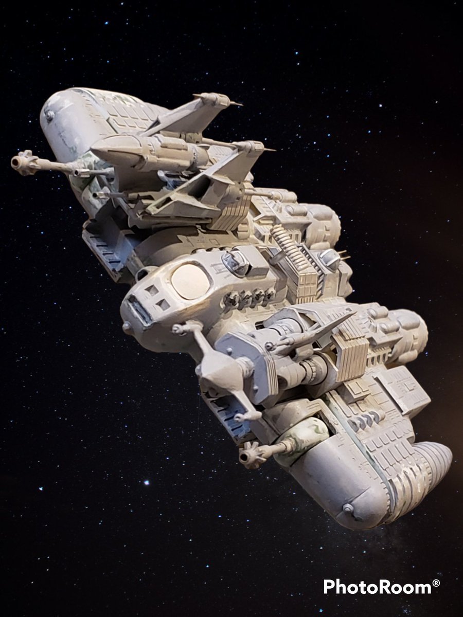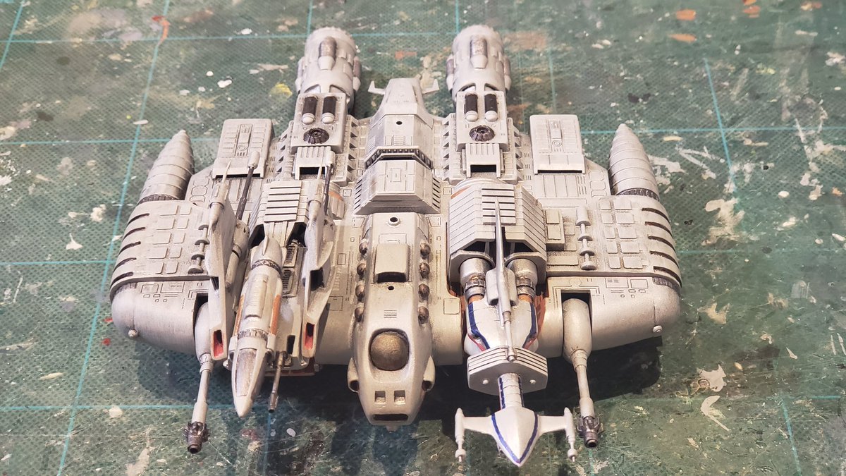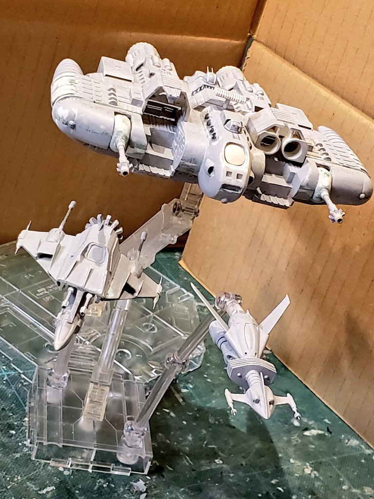 リアベ号進捗ー。上下を接着、合わせ目消しもあらかた片付きました。まだ少し残ったディテールと表面処理を片付けて5月中にはケリをつけたいところです😅 #リアベ号 #宇宙からのメッセージ #Sankuokai