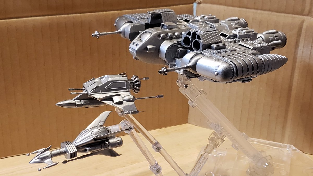 リアベ号、シロー号、アロン号の分離バージョンもおいておきます。キットは合体改造前の劇中前期タイプで、シロー号、アロン号の方は劇中後期タイプにするだけでなくプロポーションやディテールも大きく改修しているこので、実は本体より手がかかってます😅 #リアベ号 #リアベスペシャル #Sankuokai