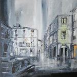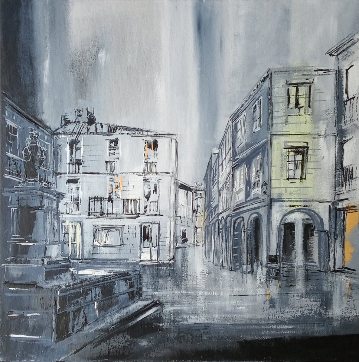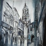 #Santiago, Rúa do Vilar, Berenguela #illustration #art #contemporaryart #painting #perspective #architecture #street #town #cityscape #acrylic #blackandwhite #santiagodecompostela