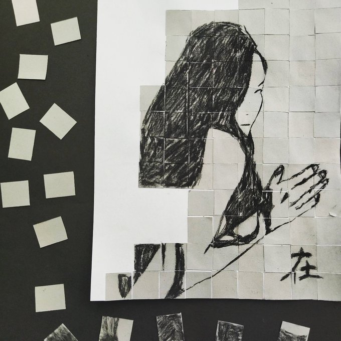 在 drawing & design: Satoshi Shimoguri(GK) artist model : Anna Uchiyama #drawing #paperart #contemporaryart #Japaneseartist #SatoshiShimoguri #calligraphy #illustration #design #mixedmedia #デザイン #現代アート #書 #イラスト #ドローイング #ミクストメディア