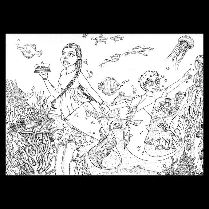 🐠 Symbiotic Relationship 🪸 An illustration that is based on two #Mermay2022 prompt no. 5 #Symbiotic and prompt no. 6 #Doodle. #mermay #art #sketch #SaturdayThoughts #artshare #drawingoftheday #mermaid #Siblings