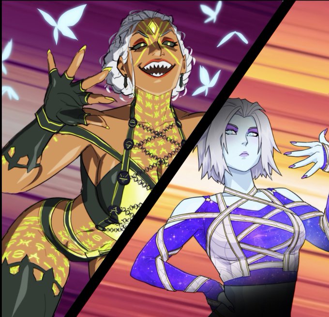 Savathun and Eris Morn dark timeline version (Oct 2022) The witch Queen conveniently goes to human height when entering the wrestling ring. #destiny2art #erismorn #savathun twitter.com/kevinrages/sta…