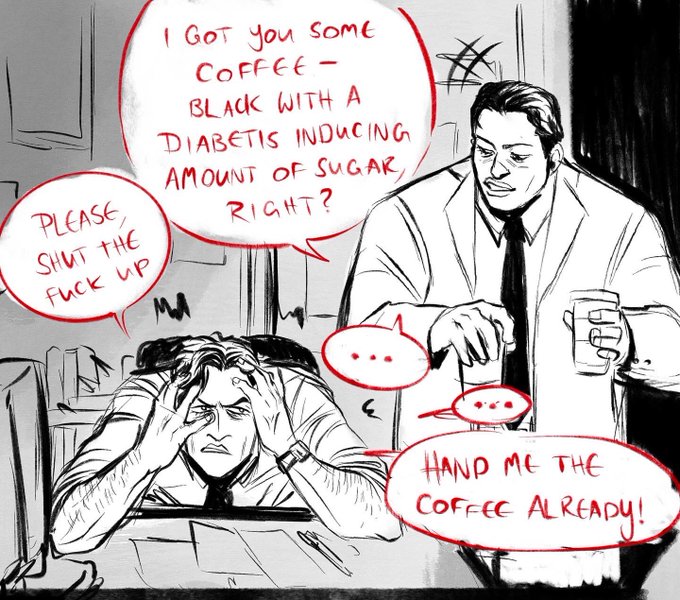 There’s a weird mating ritual going on at the office #hoffstrahm #saw #ArtistOnTwitter #DigitalArtist