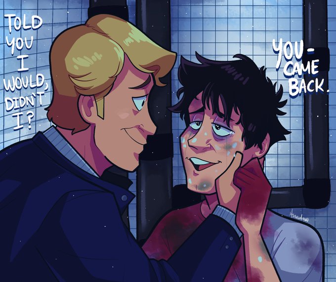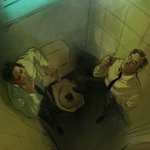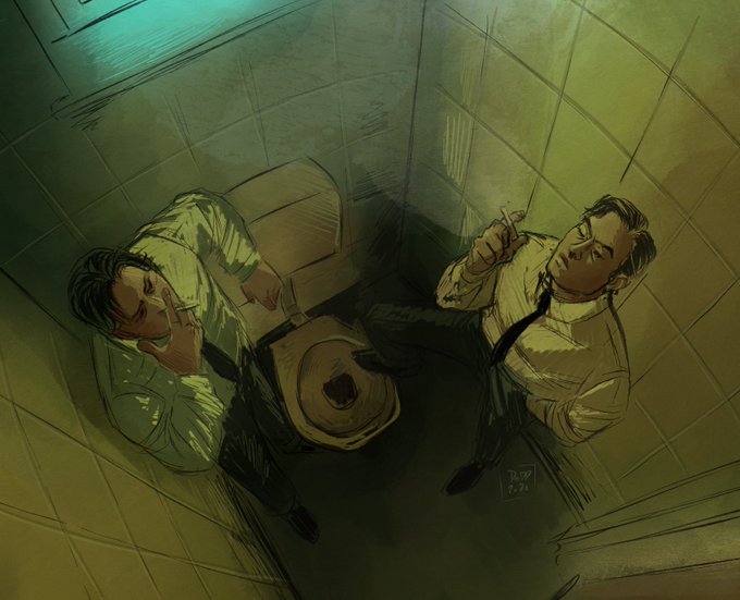 Nothing sus about two guys taking a smoke break in an empty stall, am I rite? Quick practice piece #hoffstrahm #saw #ArtistOnTwitter