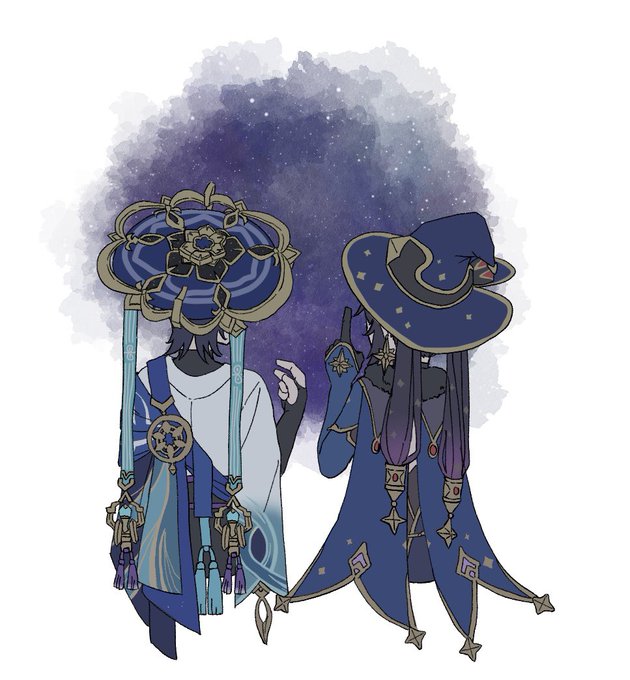 #ScaramonaWeek23 Day 3: Reincarnation AU I'm sure you can tell I struggled with what to do for this day. Aaahh well, as long as Scara and Mona are in it, who cares🤣 #scaramona #wandermona #genshin