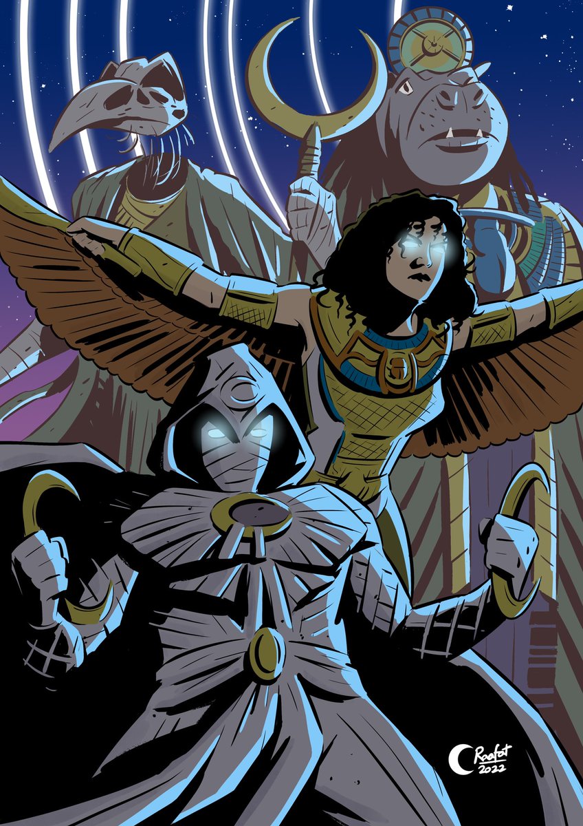 I tweeted this a few days ago, wasn’t happy with certain parts of it, got distracted with other stuff, went back to it, tweaked it a bit, and here it is #MoonKnight #moonknightfanart #ScarletScarab