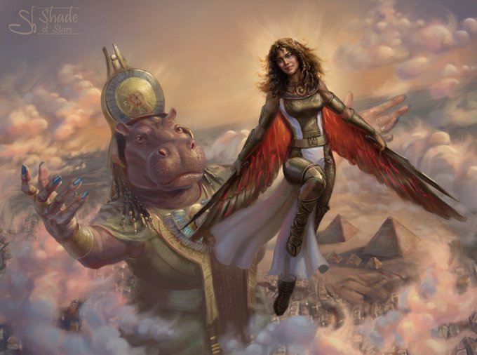 I watched #MoonKnight and really liked it. Taweret is the cutest, and Layla is so cool! So, I just had to paint this fan art 🥰 #ScarletScarab #taweret #moonknightfanart