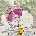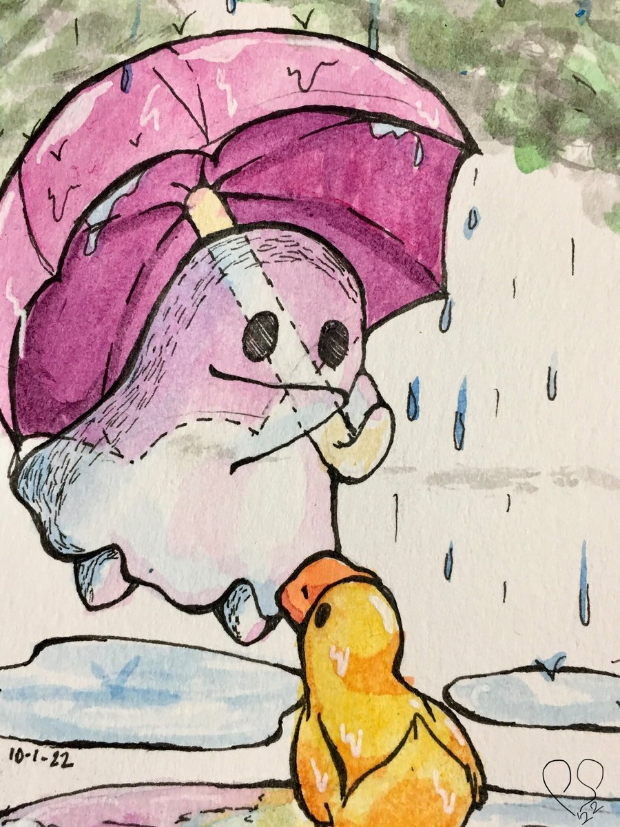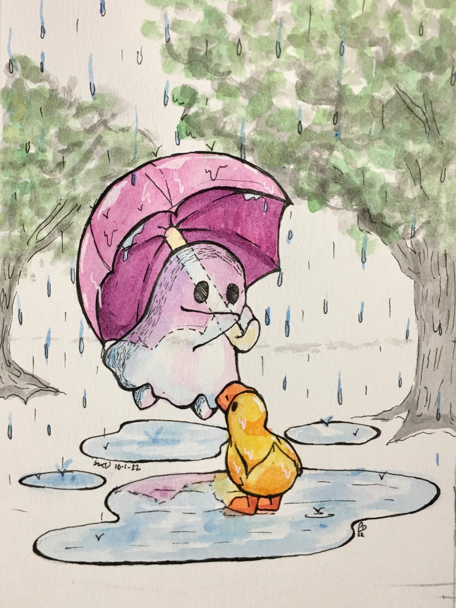 Day one is a cute ghost! Not sure if the duck is curious about the floating umbrella or if it can actually see the ghost, but they’ve made a ✨connection✨ #Drawtober #Art #Artist #TraditionalArt #DrawingPrompt #Inktober #ScaryCuteSpooktober