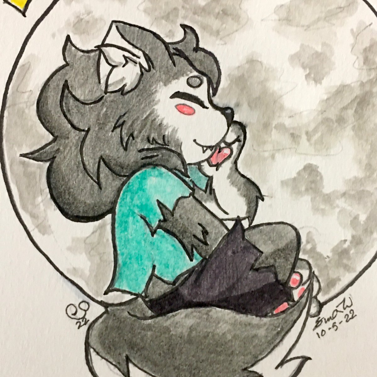 Day 5: Werewolf- cute He’s just pleased as punch to be here. I think this is my favorite thing I’ve ever drawn he’s so cute. 🖤 . #Art #Artist #TraditionalArt #Werewolf #Drawtober #Inktober #Spooktober #ScaryCuteSpooktober #FurryArt