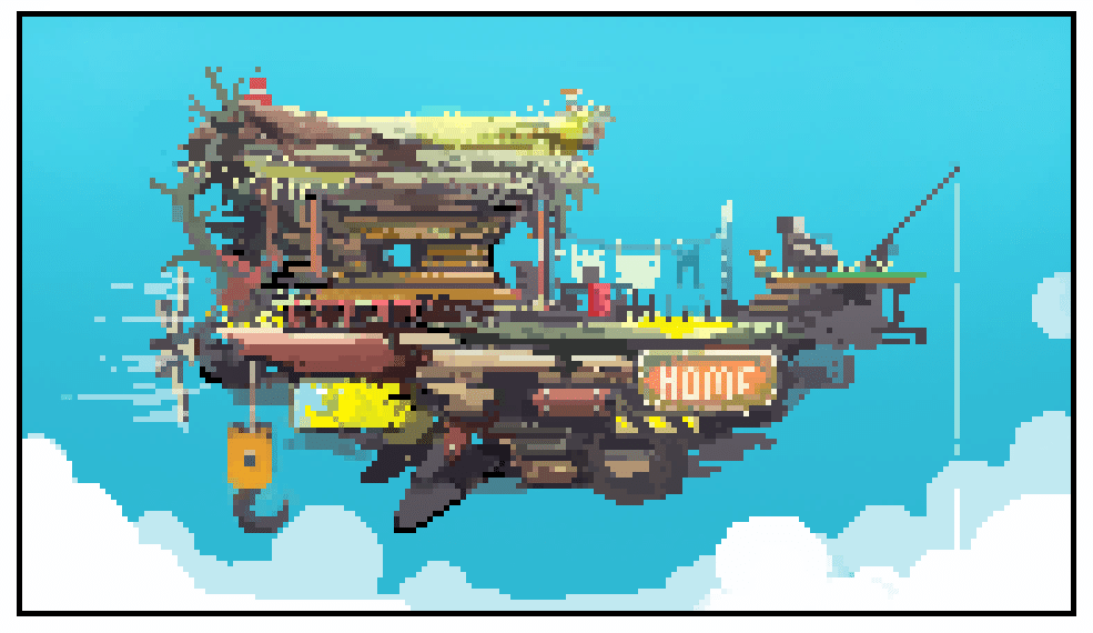 Here's my entry for @Pixel_Dailies theme #home for a Sky scavenger Hope you guys like it! #pixel_dailies #pixelart #ドット絵 #home #ship #scavenger