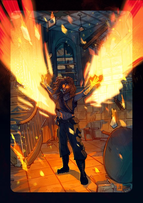 🔥 Illustration commission of Fharya for @ninesofeight, burning down their abandoned orphanage. Catharsis baby. #anonbeadraws #commission #dndcommission #digitalart #dndart #fire #illustration #dnd #characterart #digital #scene #artistsontwitter