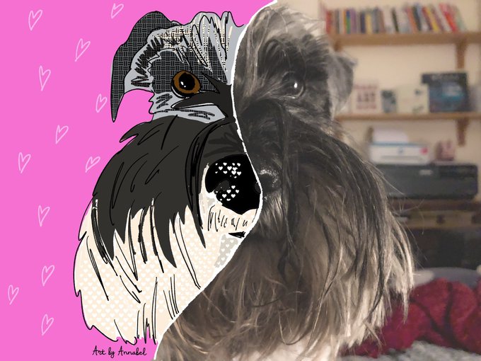 I’ve just been inspired by some cool drawings I’ve seen under the hashtag #toonme and decided to #toonmydog or #toonmyschnauzer Fun! Half a cartoon Reeva. 💕#cartoon #digitalart #art #dogart #toonmechallenge #toonmydogchallenge #SchnauzerGang