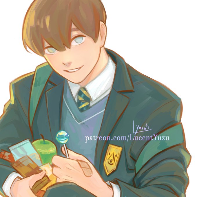 Want some? 🍬 (High school Reum is sharing his haul of treats with everyone. HQ printable version is available on my Patreon) #art #digitalart #digitalpainting #oc #clipstudio #schoollife
