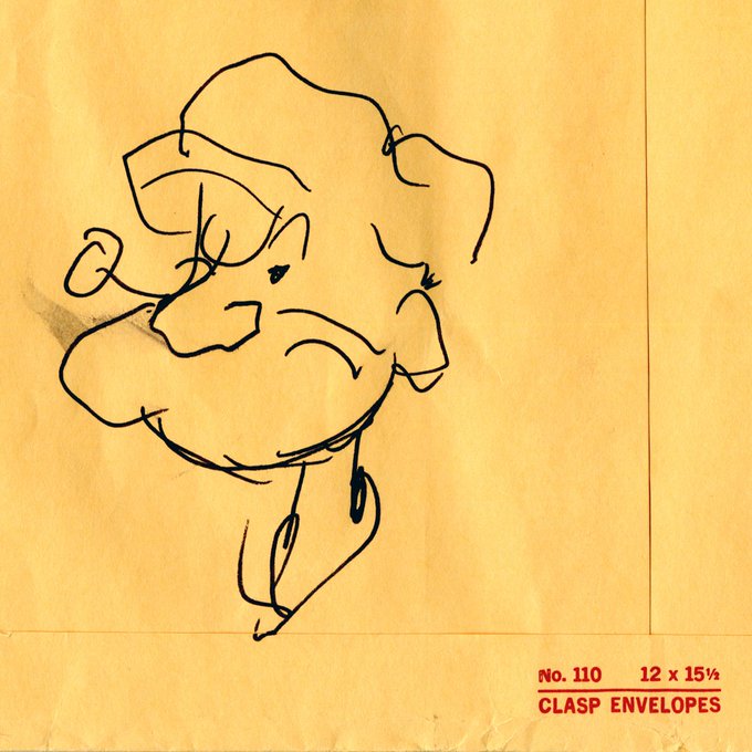 “Some comic strip characters, just like in other media, sort of rise above what they are. Popeye is a perfect example. Popeye is immortal." —Charles M. Schulz Now on view: bit.ly/3jZ6cYE #Schulz100 [📷 1–2. Doodles by Schulz 3. Schulz at San Diego Comic-Con, 1974]