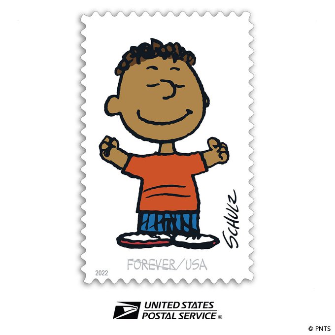 📨 8 more days until the Charles M. Schulz PEANUTS stamps release! Today we countdown with FRANKLIN! Join @Snoopy & @USPS at the Schulz Museum on Sept. 30 for the First Day of Issue Dedication Ceremony at Noon: bit.ly/3RuI3I2 #Schulz100