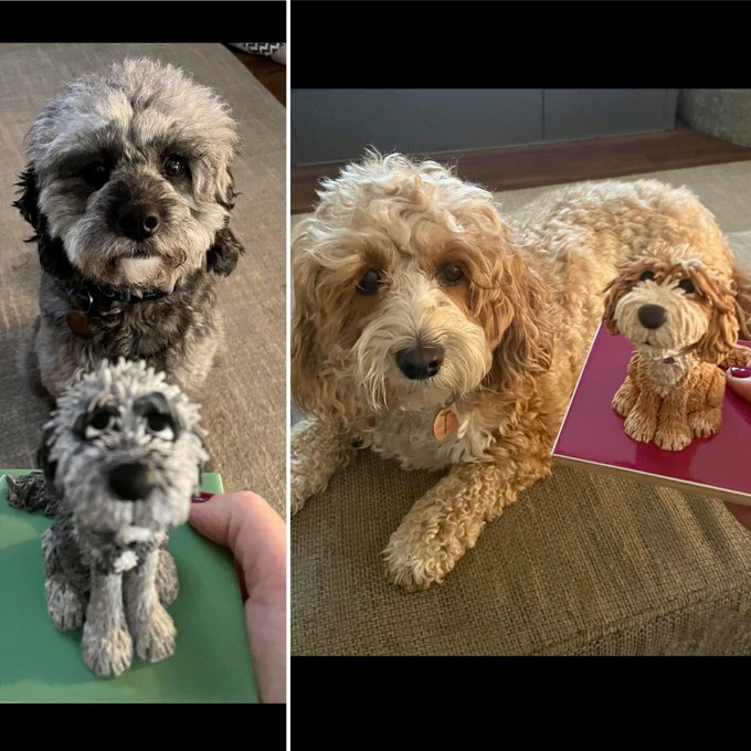 Remember mini Ted & Tilly? Well here they are with real life Ted & Tilly 🤗 How gorgeous are these customer photos?!📸 #MHHSBD #handmade #artistsontwitter #ScottishCraftHour #EarlyBiz #petportrait