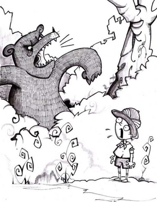 Throwback to an illustration I did 12 years ago! I still like it 😁🐻 #illustration #oldie #archive #drawing #doodle #12yearsagotoday #throwback #art #artwork #bear #bearattack #scout #danger #scary