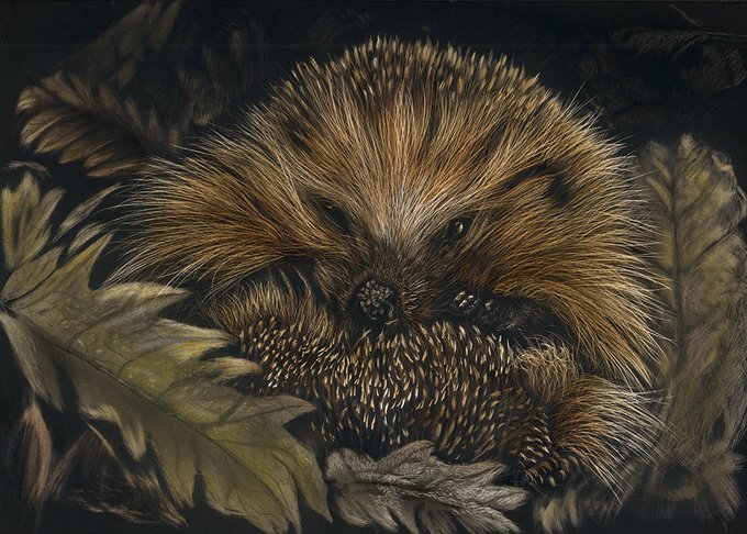 So I love painting big cats, but I also love painting wee hedgehogs, just finished 'Golden Grub', 7x5 inches, for sale and painted on @Ampersand_Art #scratchbord with fluid acrylic. #art #artistsontwitter #Artists #painting #homedecor #artforsale #ArtOfTheDay #hedgehog