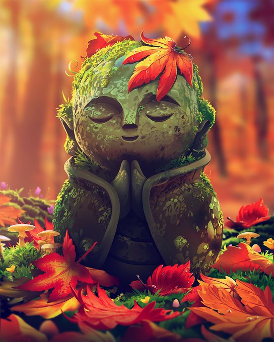 created an Autumn version of the little jizo statue i drew a while ago...guess winter is next :P #art #illustration #Procreate #painting #sculpture