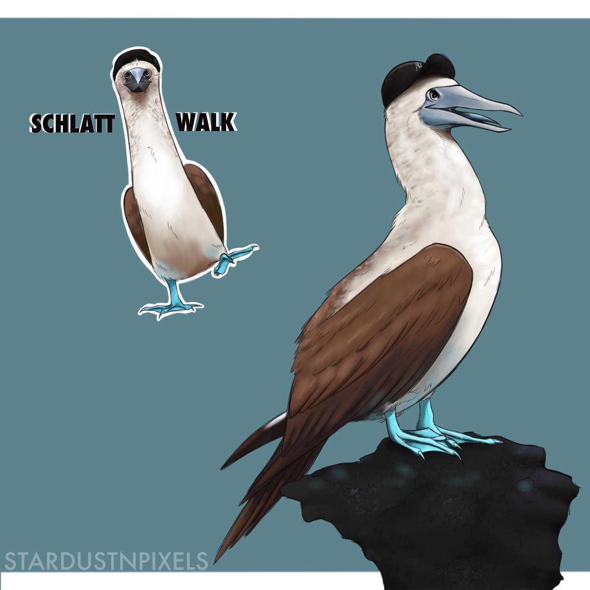 Bonus of JSchlatt as the Blue Footed Booby, you know i had to do it to em’. This pretty much gave me an excuse to do a fun lil drawing of my second favourite sea bird (° ͜ʖ°) #art #digitalart #lunchclubfanart #jschlattfanart #seabird #birdart #digitalpainting #birdmeme