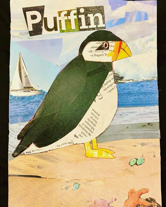 #Puffin #birdtober2020 #inktober2020 #seabird #birdtober #inktober #papercollage #bird @aholmesartstudio