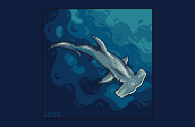 Today's @Pixel_Dailies theme, #SeaCreature . Hammerhead Shark for today's! Always love this majestic animal. Original Resolution: 96 x 96 px. #pixel_dailies #pixelart #ドット絵 #aseprite #digitalart #pixelartist #retroart #dailyart #pixelartwork