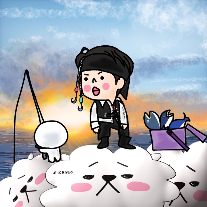大物釣れたので船上でお昼ごはんみたいです 🍽🚢 ⚠️イラストの保存&使用の際は下にある注意事項お守りください🙇♂️ #とれたてわかめ #btsfanart #SEOKJIN #wootteo #RJ #SeaofJINisland