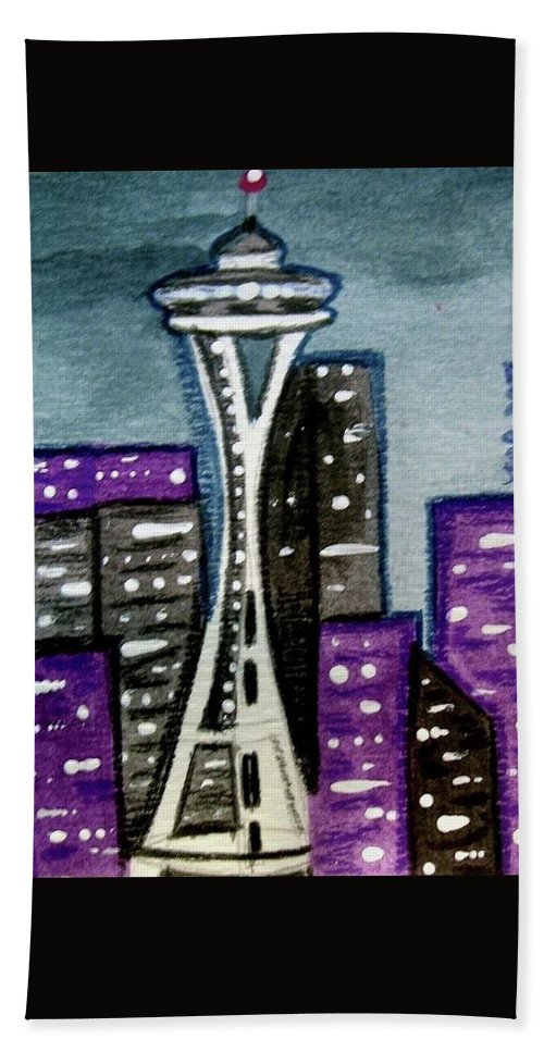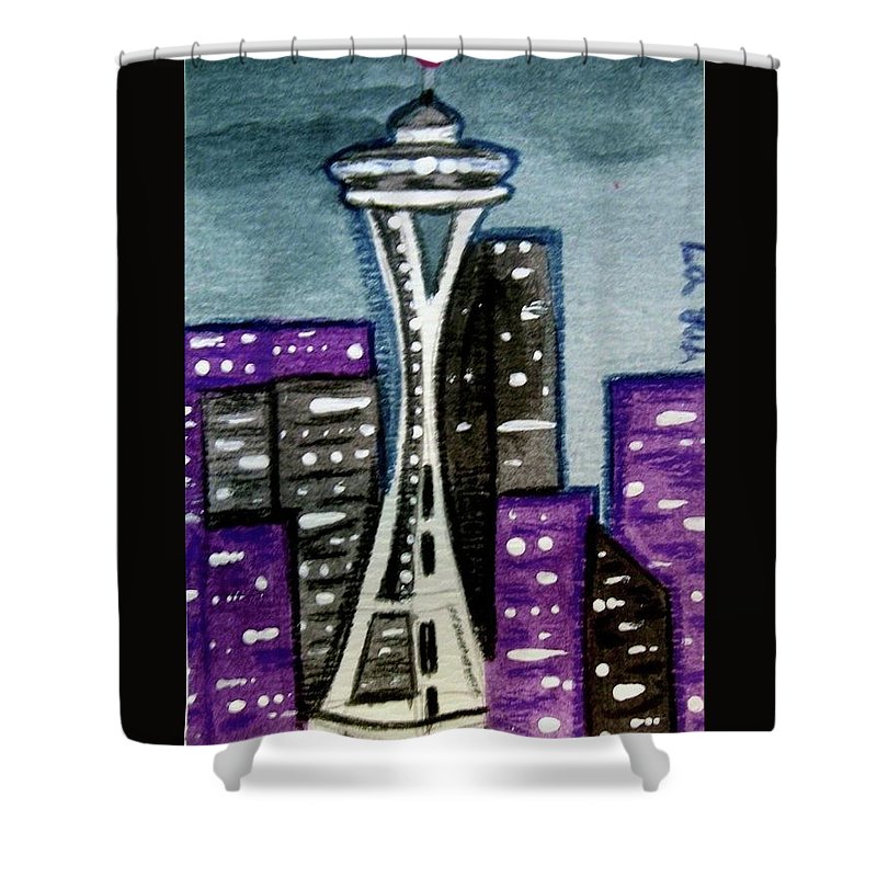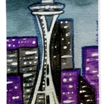 Seattle Space Needle Shower Curtain & Bath Towel. These and other products with this image of my original painting found here: fineartamerica.com/featured/seatt… #buyintoart #findartthissummer #purple #ArtistOnTwitter #painting #art #whimsical #colorful #Seattle #spaceneedle