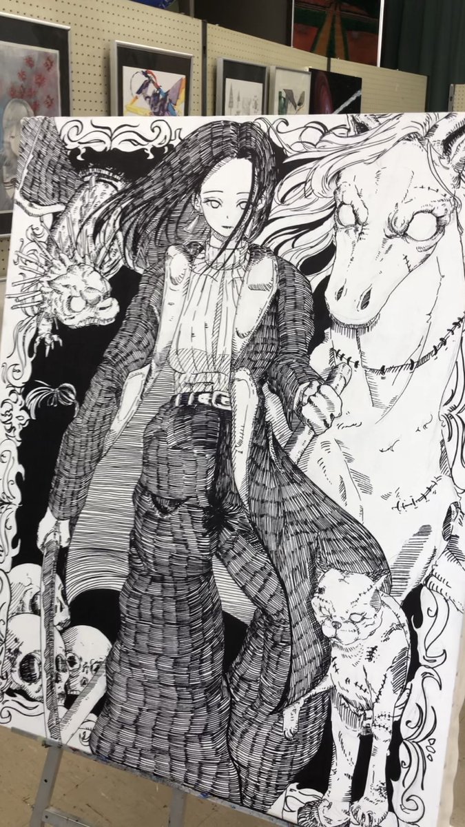 部活作品完成 #フォロバ100 #Sebuahilustrasi #illustrator #キャンパス #ペン画 #NieRAutomata これまぁまぁでかいキャンパスやから結構時間かかった。笑 気になったらキャンパスのF50で調べたら大きさが出ると思う。