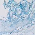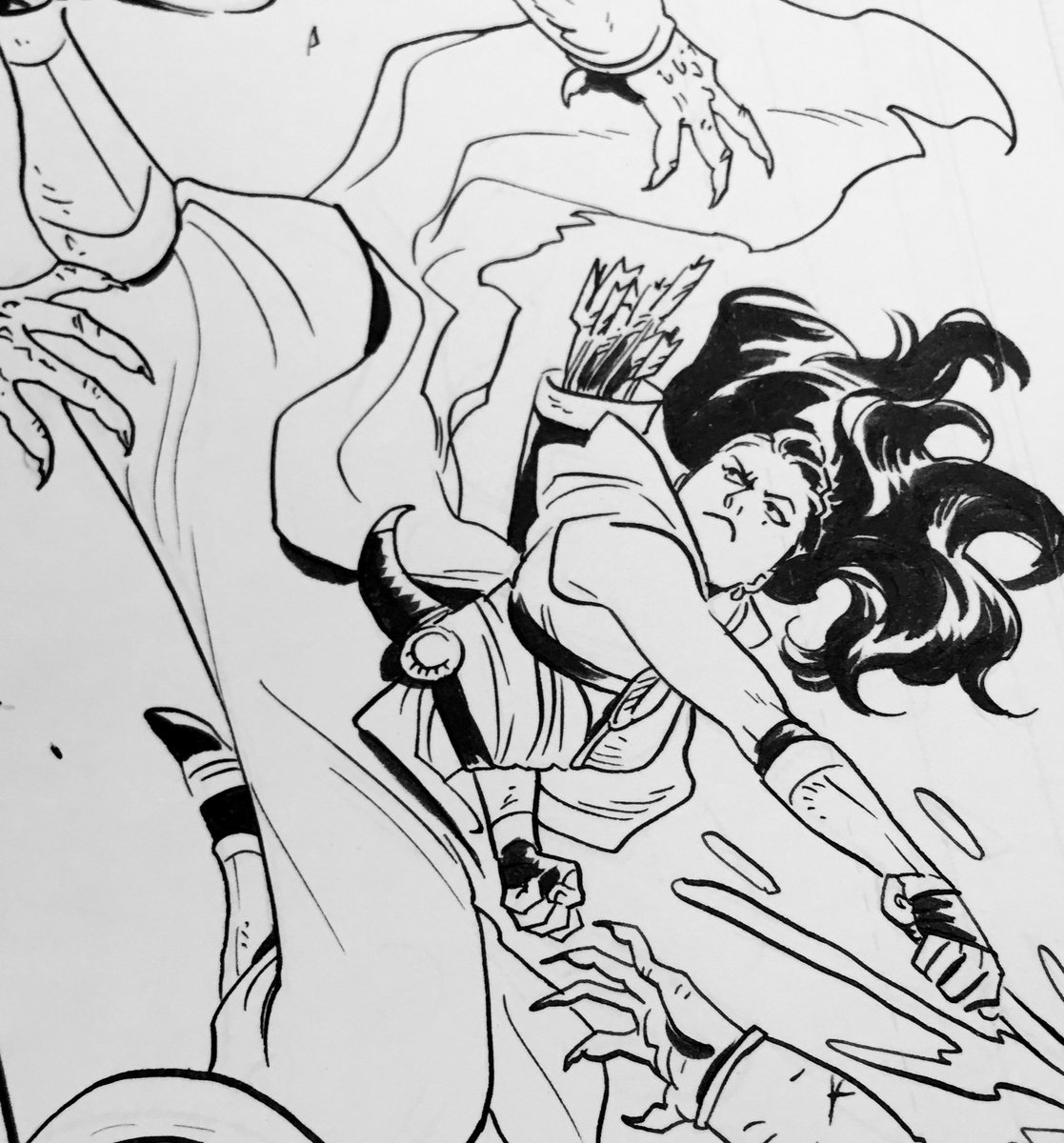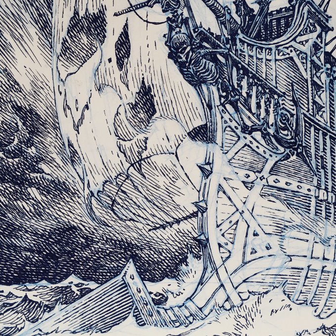 Light-boxing my way through the final version of this merry fella... partial inks detail #SecretProject