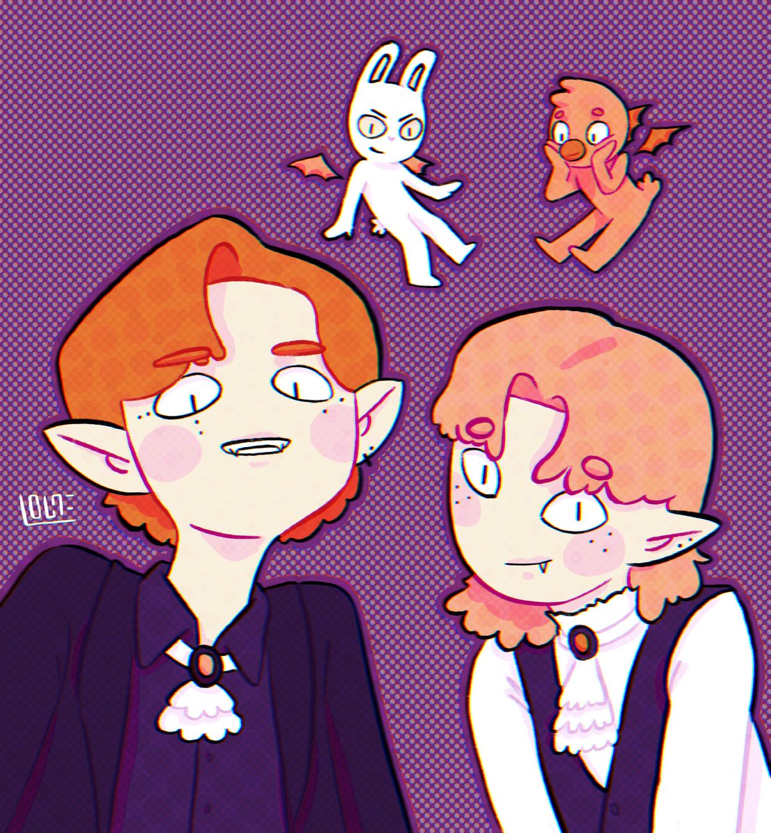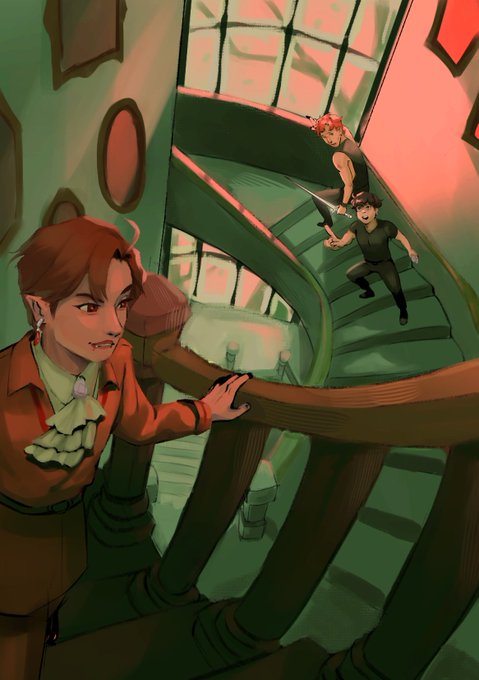 my #SecretSTAYspookster2022 piece for the wonderful @trevbien 🦇✨ some binchan chasing local vampire lino! I hope you like it and have a spooky halloween 🧡🖤