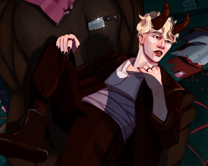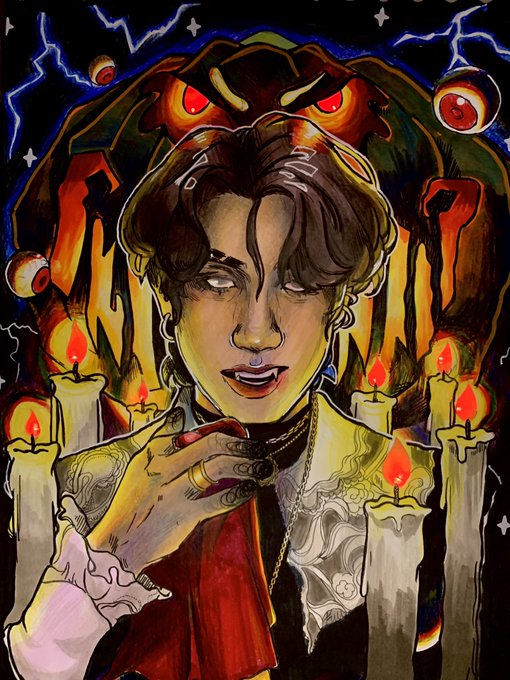 cw // blood, demon 🎃 happy spooky day everyone 👻😈 — #SecretSTAYSpookster2022 #straykidsfanart #han #changbin #straykids