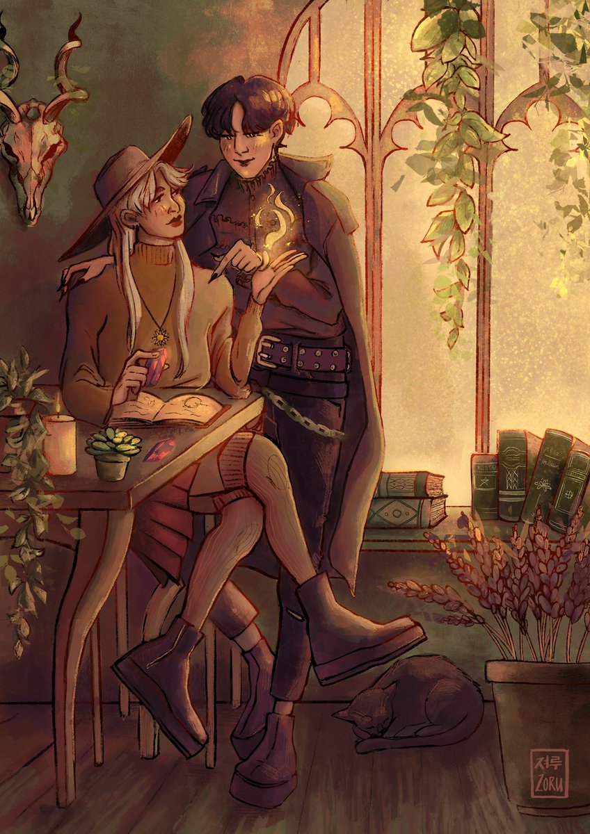 what is this witty witch up to? 🤨🤨 showing off to his vamp bf it seems,,, happy halloween, @sleepy_uwus !! 🎃🧡🦊 #SecretSTAYSpookster2022 #skzfanart #straykids