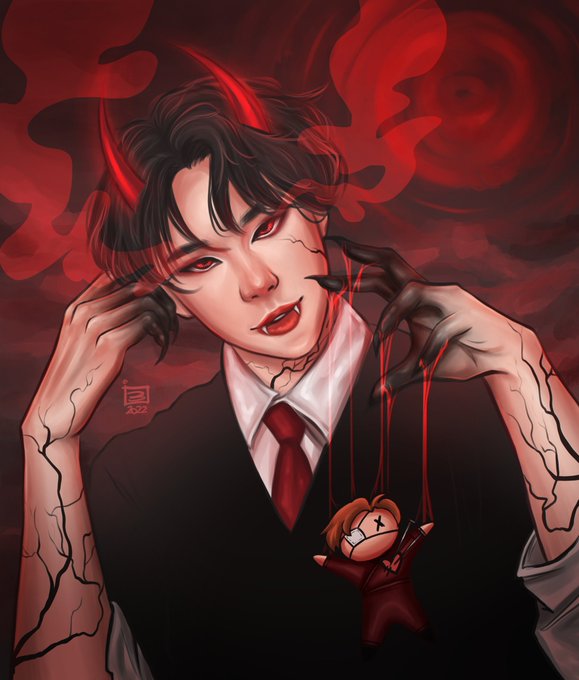 we're all just puppets... but only few can see the strings 🧵 Happy Halloween @serastial !! i hope this demonic puppeteer Hyune suits your taste, i for sure enjoyed bringing him to life 💗🥀🦇 🎃 #SecretSTAYspookster2022 #hyunjin #StrayKids #StrayKidsFanart #SKZ #SKZfanart