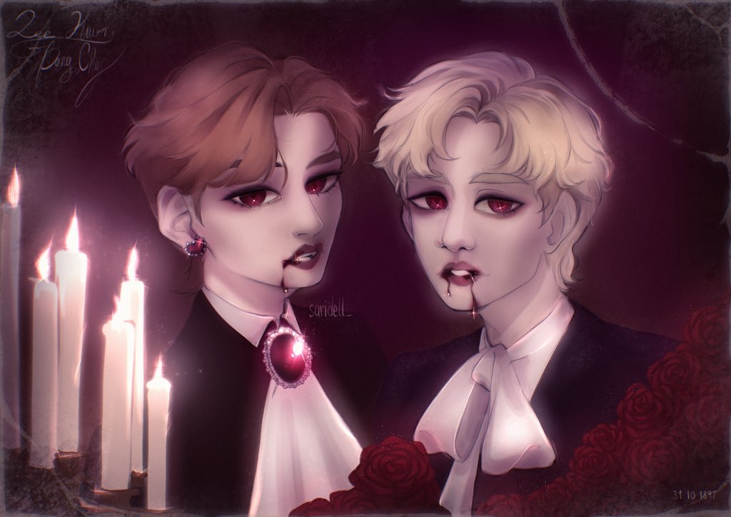 Happy Halloween ~🦇🕯 Vamp minsungin for @chrispyuno_ hope you like it!! #SecretSTAYspookster2022 #Straykids #straykidsfanart #leeknow #han #I_N
