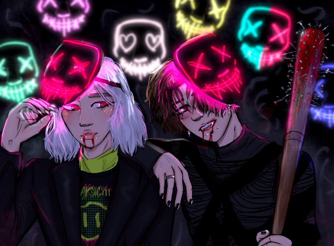 Hyunlix for @yawnjunsiivee !! i hope u have a fun halloween~~!!<33 cw// slight blood #SecretSTAYspookster2022 #hyunjin #felix #Straykidsfanart #Straykids