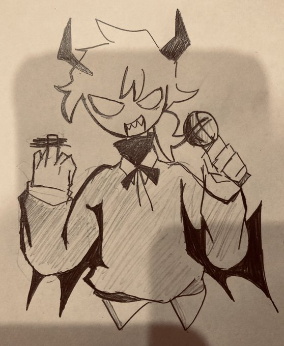 selくん!😈˙˚ 𓆩 ✞ 𓆪 ˚˙ 無性に描きたくなってきたからアナログの落書き探してデジタル化したよ(´っ•ω•c`) #FNF #selever #絵柄が好みっていう人にフォローされたい