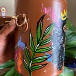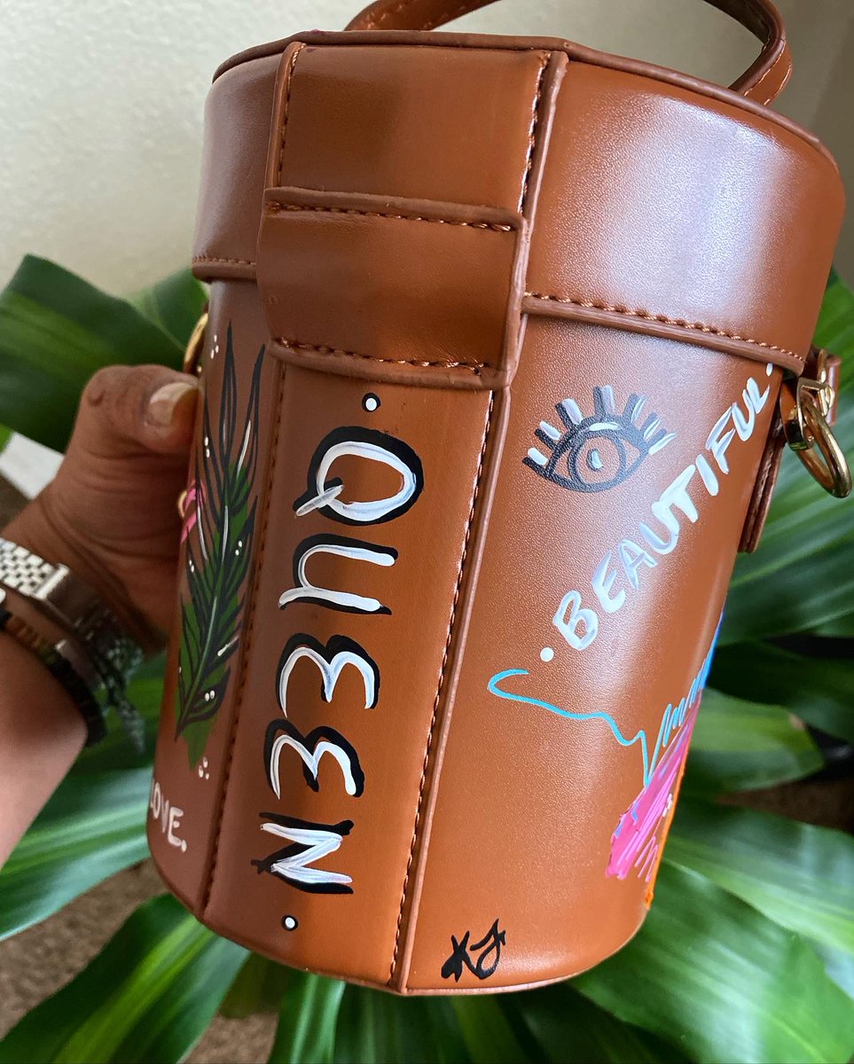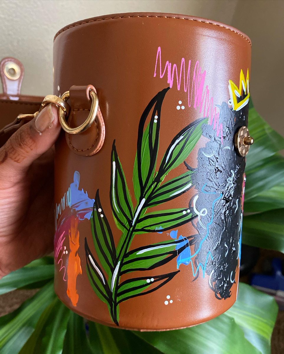 I had this little bucket bag for awhile, finally painted it the other day. 😍✨ #artist #femaleartist #blackgirlmagic #selftaughtartist #vibrantcolor #illustration #mixedmedia #acrylicpainting #custompurse #handpainted #youngblackartists #blackownedbusiness #kfinnie