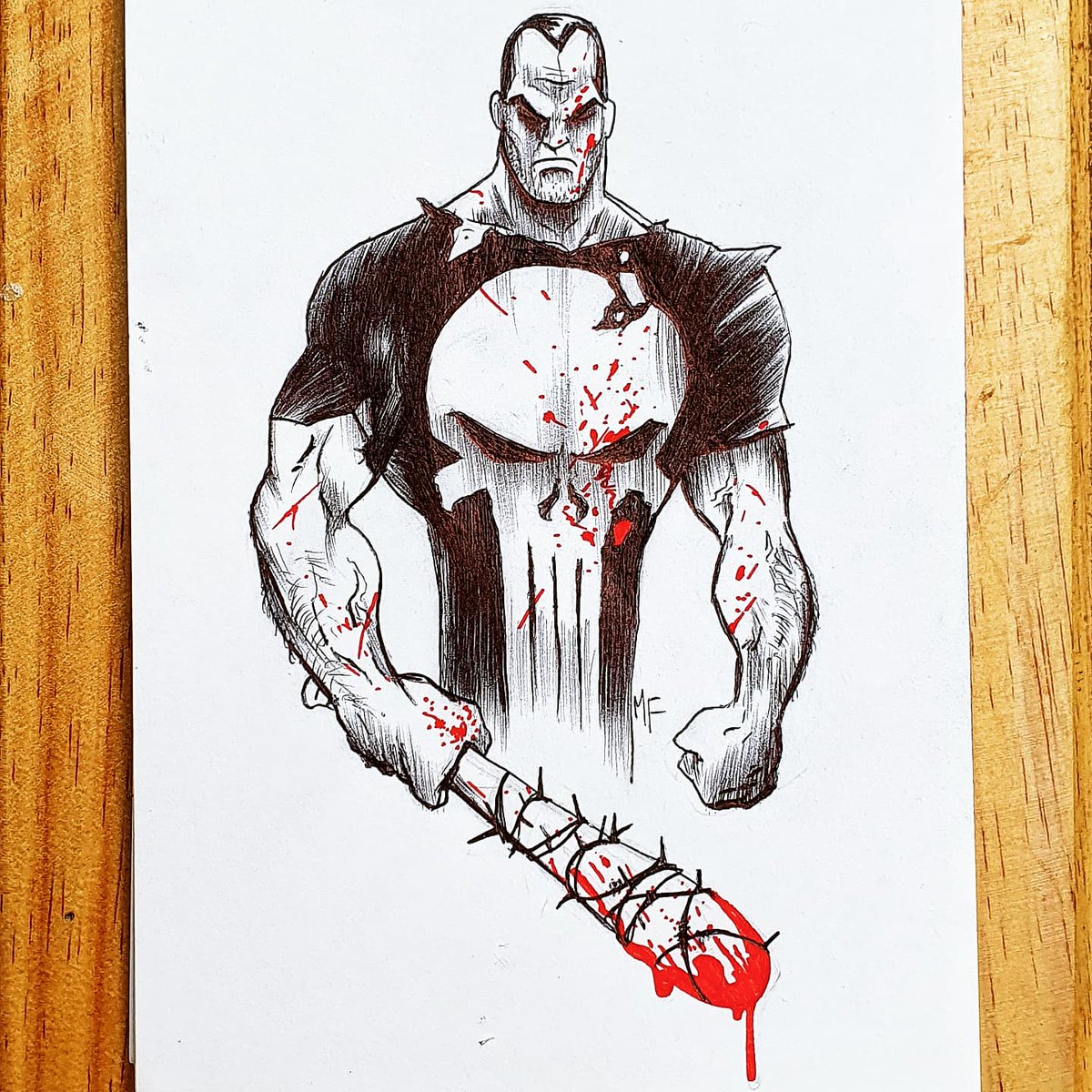 04- The Punisher. #SemanadelVillanoyAntiheroe Reto #VDINK de @mikemaese y @crayolamx #SiemprehayunaAlternativa #viernesdeilustracion #viernesdeilustración #INKTOBER2021 #ink #inktober #Marvel #ThePunisher #FrankCastle #ballpointpen #boligrafo #plumabic