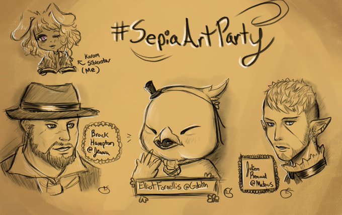 So many people showed up to this party! It was hard to choose who to draw! #SepiaArtParty #FFXIVART