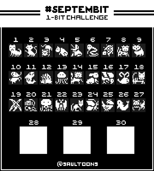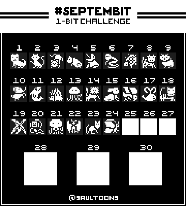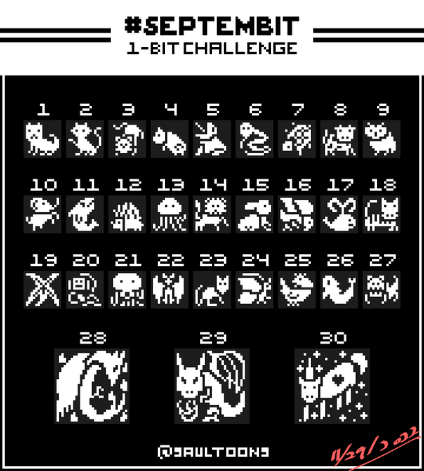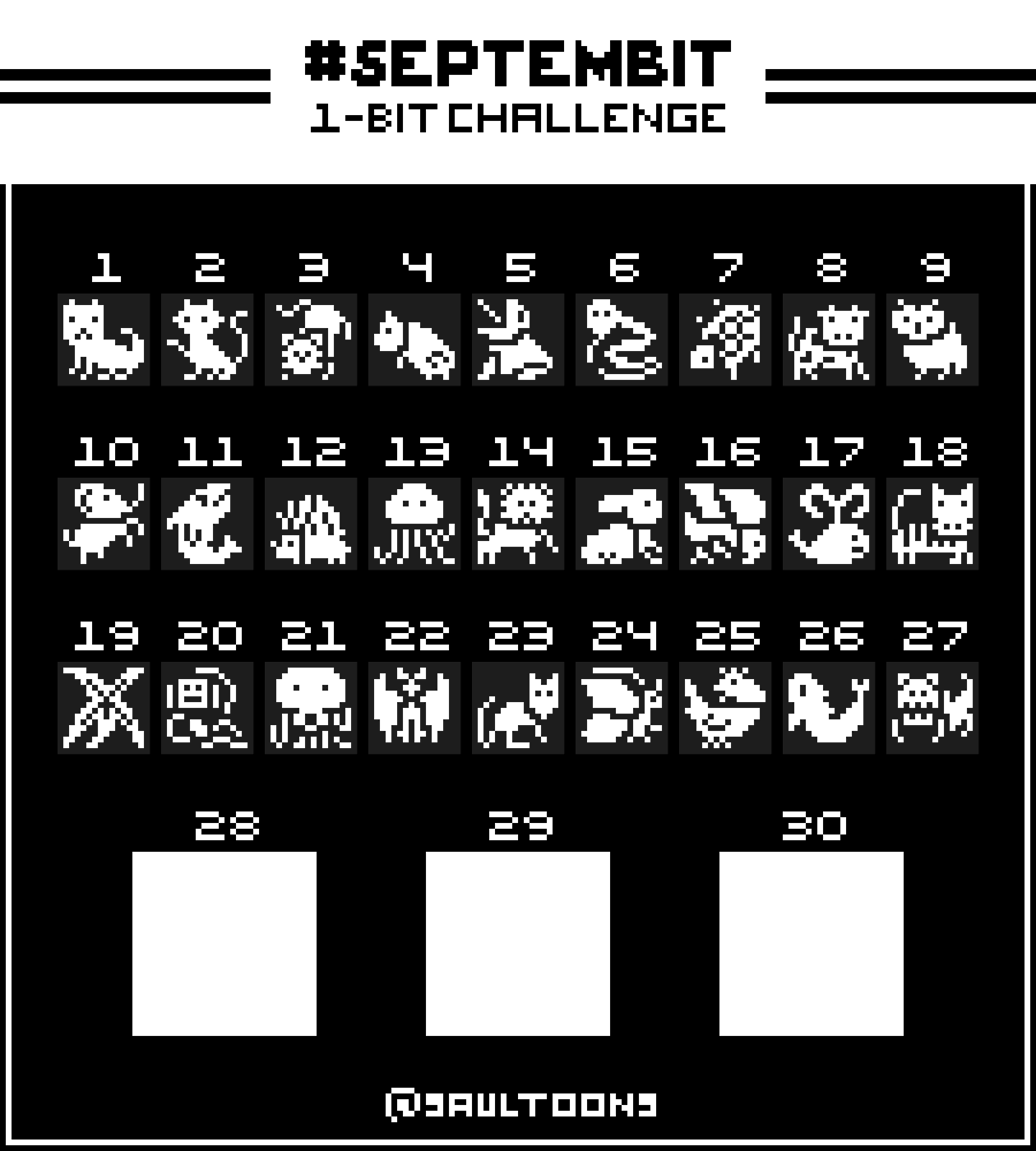 All #SeptemBIT 2020 art completed! It's so difficult, but made me grow up😤 Next, What shall I paint? Please recommend to me😆 #Pixelart #pixelartist #ドット絵
