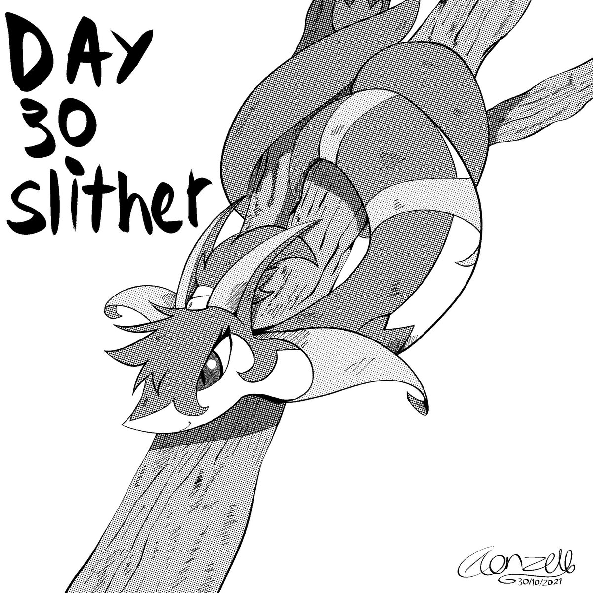 #inktober2021day30 SLITHER I dedicate to draw my Pokémon Oc Marlie the Serperior (has been evolve) slithering the trees. ;3 #inktober2021 #Inktober #インクトーバー2021 #インクトーバー #inktober2021slither #inktoberslither #inktoberday30 #Serperior #ジャローダ #ポケットモンスター