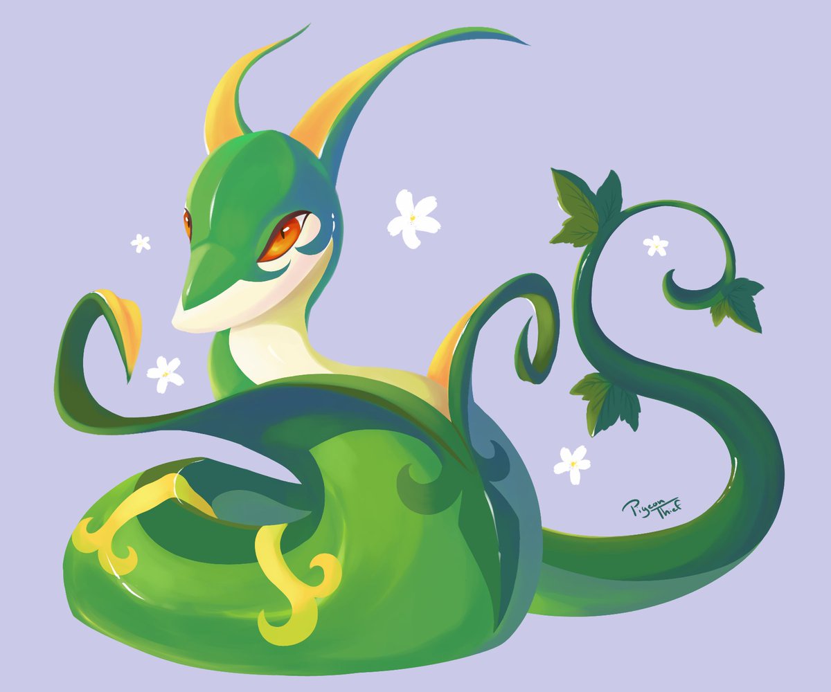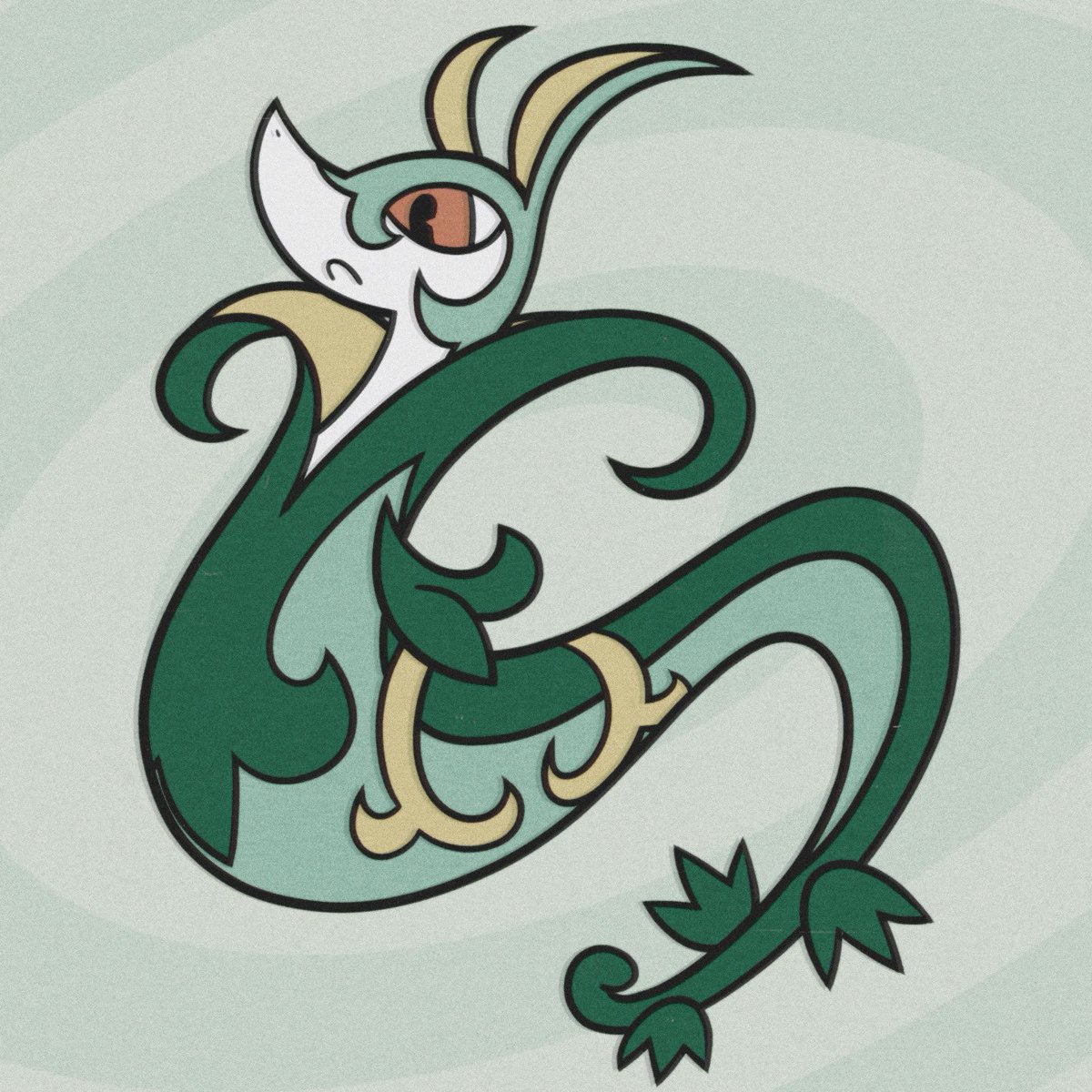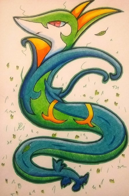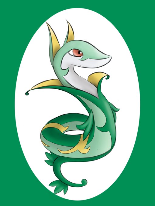 Decided to draw a Serperior in Medibang. Snakes are deceptively hard to color. 🐍 #art #digitalart #Pokemon #MediBang #serperior