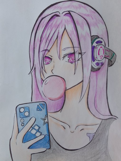 Y aquí está otro dibujito para la sucia digo la @SeziaHaruma con el pelo suelto xd como estando en casa Espero les guste :3 #ArtistOnTwitter #SeziArt #Vtuber