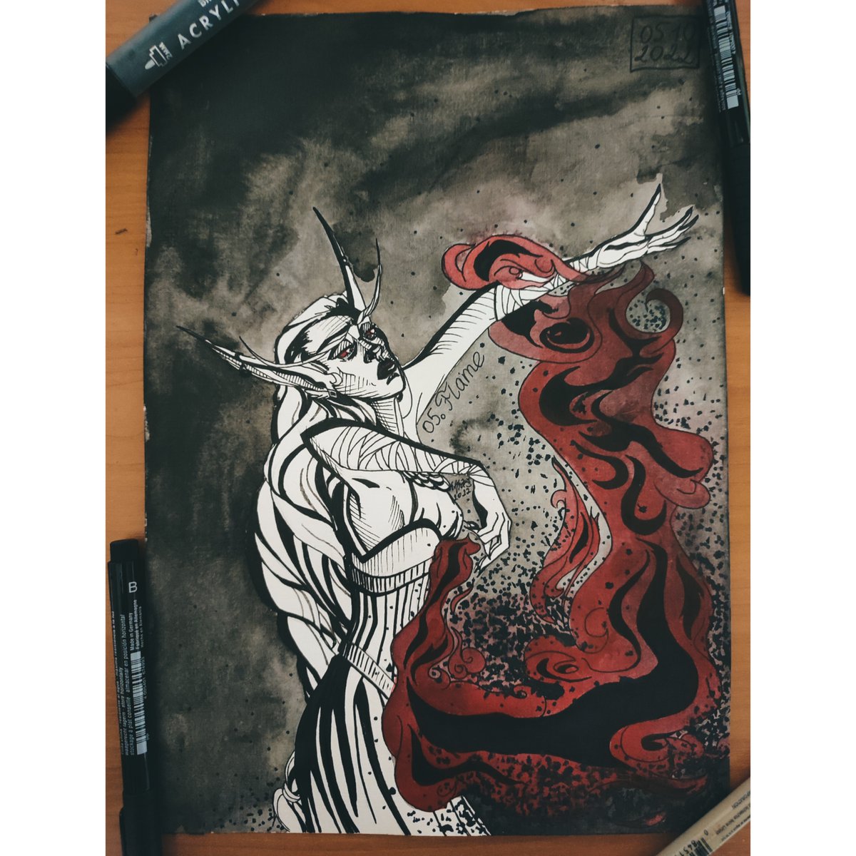 Спалим к чертям всех недругов и заберём их вещи и ценности 😈 #inktober #inktober2022 #bloodelf #HighElf #undead #worldofwarcraft #flame #shadowlands #traditionalart