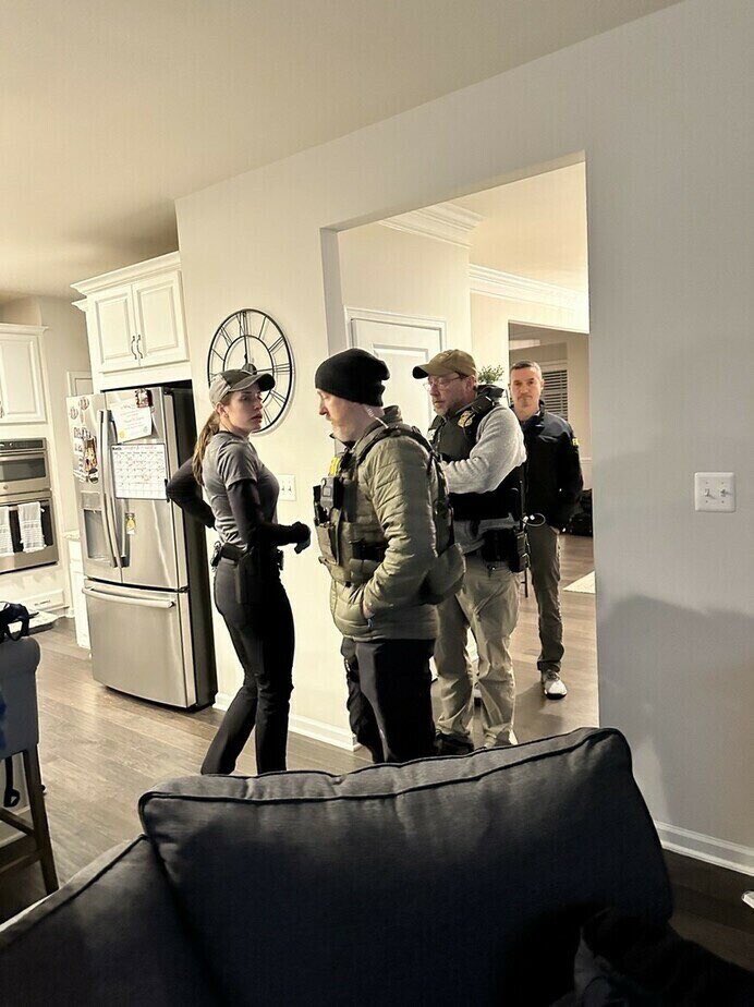 This search/arrest operation at @j6patriot’s home looks like the NICEST house the FBI has ever served a non-white collar warrant at. Maybe that’s why the gal and supervisor Dave (raid jacket) seem to have left their body armor in the trunk. #shame #cosplay #fbicorruption