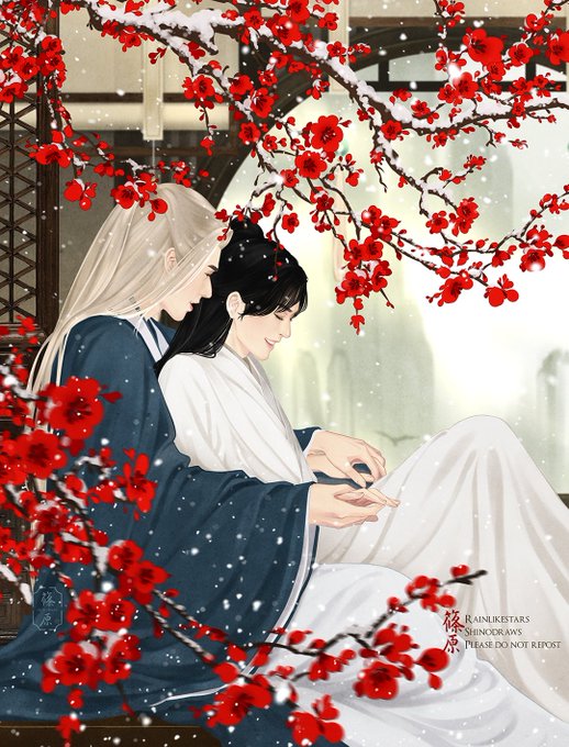 I'm really happy I can finally post my piece for @wohzine! I'm really honored to be part of this incredible project. 🤍💙 ~Winter can be harsh, but even something beautiful and precious can bloom from beneath the snow.~ #WordofHonor #ShanHeLing #WenZhou