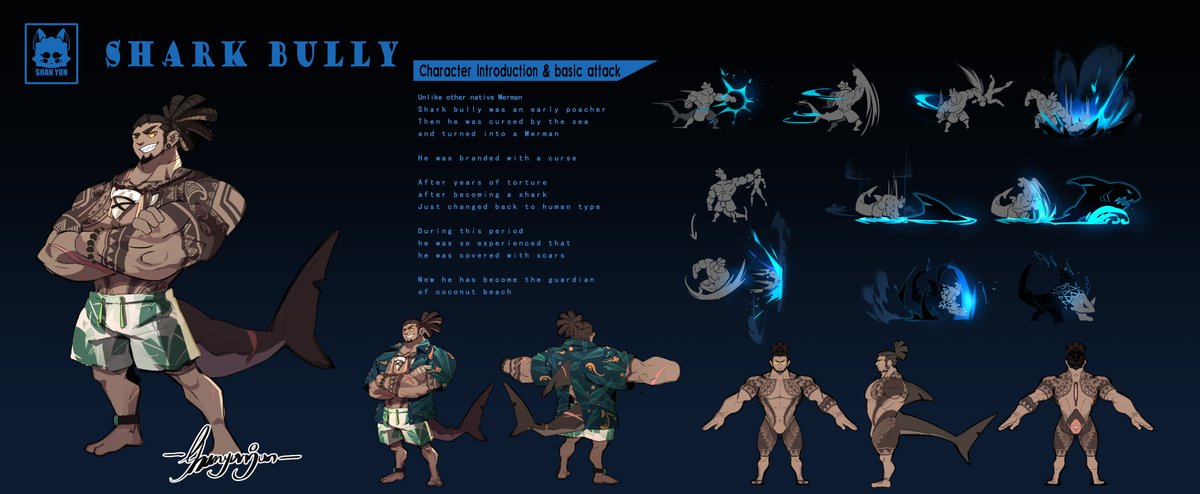【SHAN-fight】Shark Bully 鲨霸完成了~~ 是个身负诅咒的守护者,守护着椰林海滩 #furry #furryart #SHANfight #shanyunjun #originalcharacter #FGT #SharkAttack #shark
