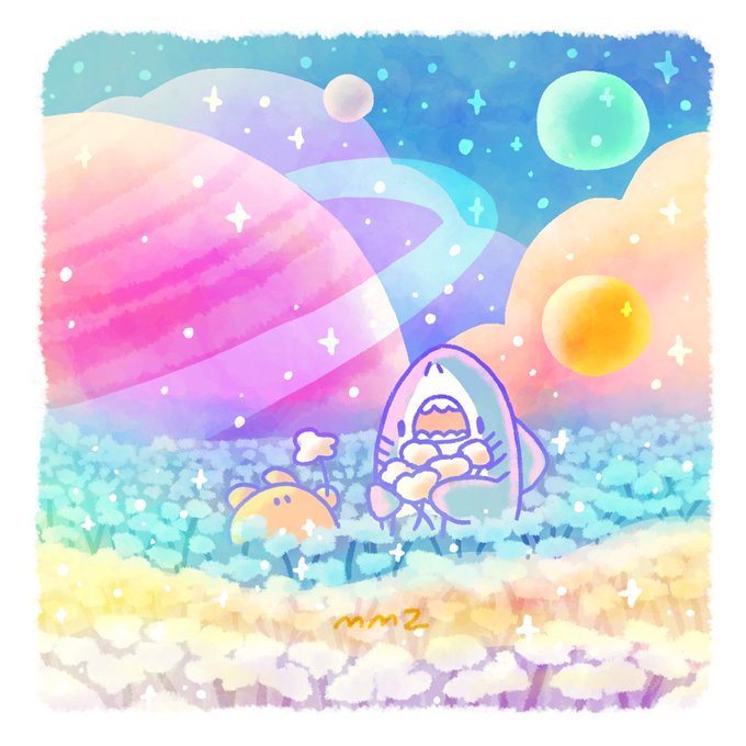 day 21 - Shark Dream cloud garden of unknown planet☁🌌 雲畑の惑星🪐 #Sharktober #Sharktober2022 #illustration #イラスト #サメとメンダコ