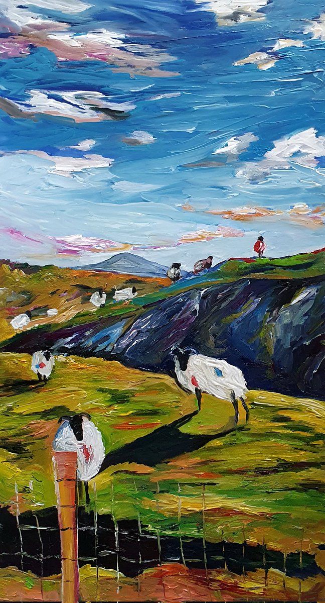 This is my painting "Swaying Whereabouts". You can check it out here: fineartamerica.com/featured/swayi… #art #arte #artlovers #kunst #艺术 #oilpainting #repost #contemporaryart #ArtistOnTwitter #landscape #stripes #cypress #trees #mountains #spring #sheep #artprints #road